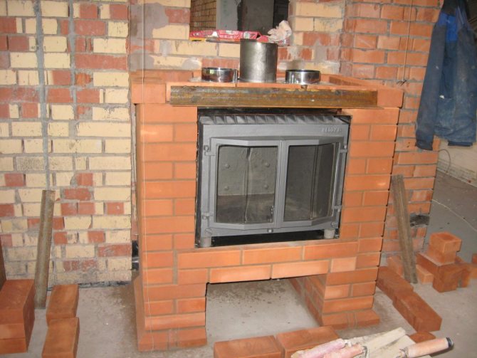 Certaines options de foyer prévoient la formation d'une chambre de combustion en brique.Mais il existe des modèles populaires dans lesquels un foyer en métal sous la forme d'une cassette est intégré dans un portail en brique. Les mesures montrent que les options avec des foyers en métal ont une efficacité légèrement supérieure à celles en briques. Cependant, la différence est si insignifiante que chacun choisit une performance appropriée en fonction de sa propre capacité de payer.