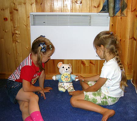 Ce qui diffère d'un convecteur d'un appareil de chauffage à l'huile, c'est la température du corps. Les convecteurs sont faits pour chauffer l'air, mais ils restent eux-mêmes aussi froids que possible. Habituellement, la température de leur corps est de + 60 à 65 degrés et la paroi arrière reste froide du tout. Grâce à cela, les convecteurs peuvent être installés en toute sécurité dans n'importe quelle pièce, par exemple dans les chambres d'enfants.