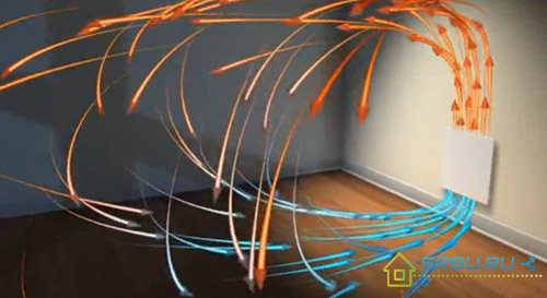 - Chauffage inégal de l'air à différentes hauteurs - lors de l'utilisation d'un convecteur, la différence de température de l'air au sol et au plafond peut aller jusqu'à 9-10 ° C, car l'air chauffé se précipite immédiatement vers le haut et l'air froid reste en dessous.