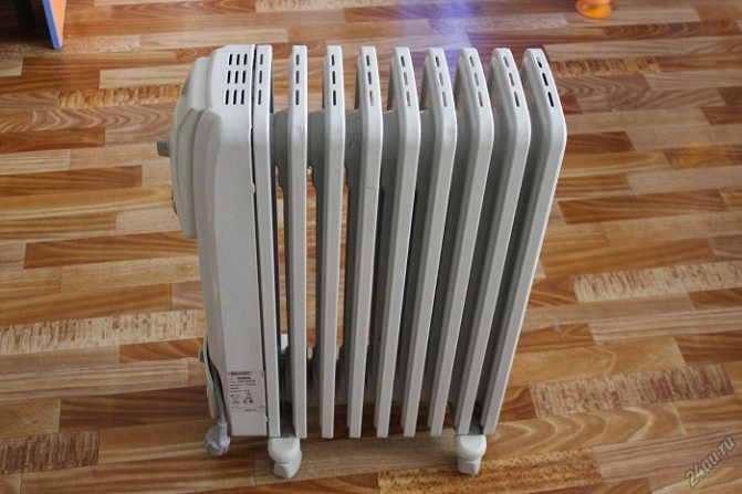L'élément chauffant d'un tel appareil n'interagit pas directement avec l'air. Il est logé dans un boîtier étanche rempli d'huile minérale. La capacité calorifique élevée de l'huile permet de rendre l'appareil inerte à son utilisation : le liquide chauffé se refroidit longtemps, transférant de la chaleur à l'environnement à ce moment, même lorsqu'il est déjà déconnecté du réseau. Structurellement, le réchauffeur d'huile se compose d'un élément chauffant, d'un corps, d'automatismes de protection et de régulation. Étant donné que l'huile chauffée est inflammable, tous les instruments doivent être vérifiés pour l'intégrité du boîtier. Certains modèles sont équipés d'un capteur de protection contre le retournement.