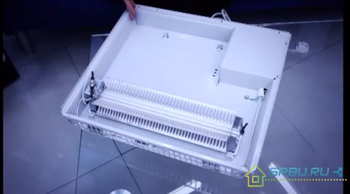 L'air froid, venant d'en bas et passant par l'élément chauffant chaud, se réchauffe et monte, chauffant la pièce. Contrairement aux radiateurs à huile, les convecteurs électriques transfèrent la majeure partie de la chaleur par échange de chaleur par convection, et seulement la plus petite partie - par rayonnement.