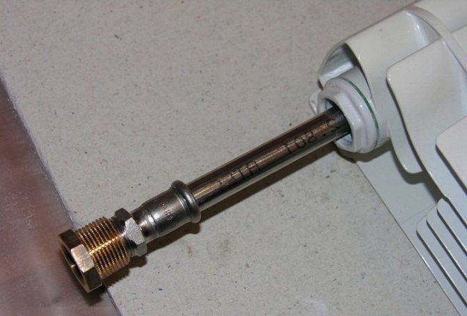 Il est nécessaire de sélectionner un morceau de tuyau qui remplira la fonction d'allongement. L'épaisseur de ses parois doit être d'au moins 1 mm et la section doit être de 1,8 cm.La longueur est prise approximativement égale à la longueur de la batterie de chauffage elle-même. Si nécessaire, il peut être raccourci à l'avenir. Il est important de ne pas oublier l'interdiction d'installer des éléments en cuivre dans une structure avec des éléments en aluminium (y compris les radiateurs bimétalliques avec des pièces en ce métal). Ignorer cette règle entraîne la destruction de toutes les parties réactives du système.