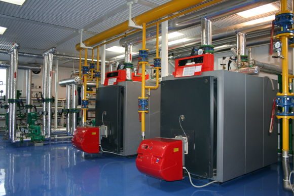 - Source de chaleur - chaudière à eau chaude ou à vapeur, gaz, diesel ou combustible solide. En outre, la source de chaleur peut être un point de chauffage individuel ou central (ITP ou CHP), qui fournit de la chaleur soit de la chaufferie centrale à plusieurs objets, soit du CHPP aux quartiers urbains et aux entreprises industrielles.