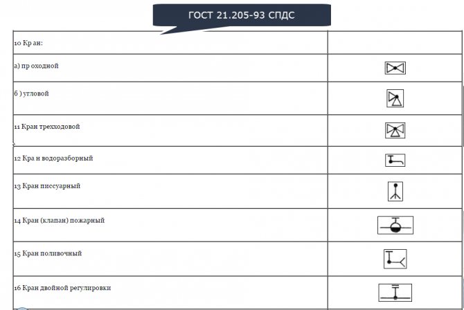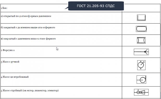 Contrairement aux schémas de chauffage visuel, dans lesquels les désignations sont plus ou moins claires, dans le schéma de principe correct, les désignations nécessitent une explication. Vous pouvez les trouver dans GOST 21.205-93 SPDS: Symboles des éléments des systèmes sanitaires. Vous trouverez ci-dessous 9 cartes avec des symboles sur les dessins des systèmes de chauffage.