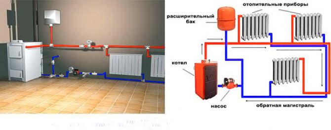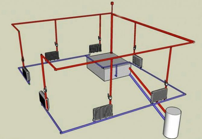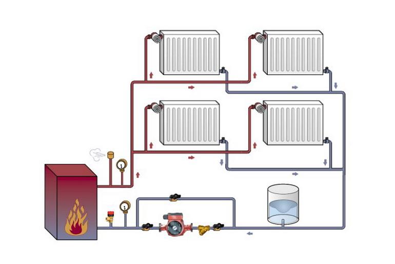 Un par un, le support est amené aux radiateurs, et l'autre, après avoir dégagé de la chaleur, retourne à la chaudière. Il en résulte un cercle vicieux le long duquel il y a une circulation constante pendant toute la durée de fonctionnement de la chaudière. L'utilisation d'un tel système est préférable pour les grandes maisons.
