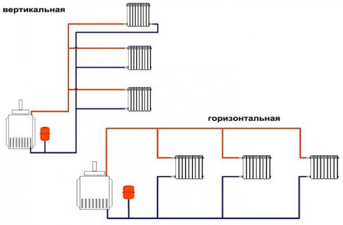 Selon l'emplacement du pipeline, il est divisé en vertical et horizontal. Dans une disposition verticale, toutes les batteries sont connectées à une colonne montante verticale. Cette option est le plus souvent utilisée dans les immeubles à appartements. Le principal avantage de cette connexion est l'absence de congestion aérienne.