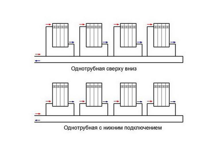 - Les éléments chauffants d'un tel système sont connectés en parallèle, tandis que dans un système monotube - en série.