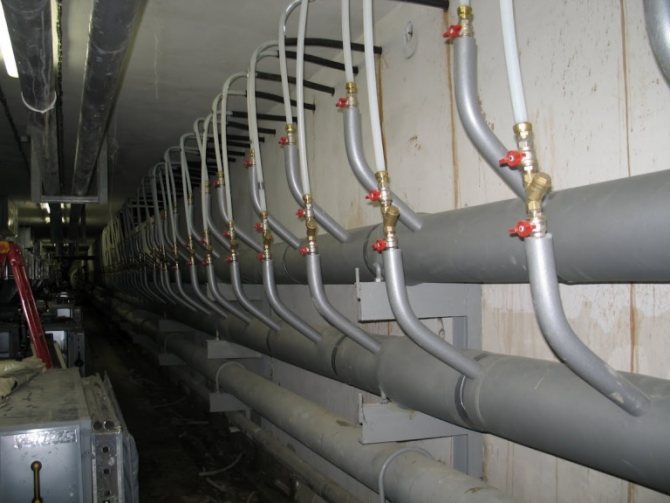 La photo est déjà meilleure! Mais les diamètres peuvent être réduits à certains endroits et économiser sur cela. Par exemple, sur la ligne d'alimentation jusqu'à 4 radiateurs et sur la ligne de retour de 2 radiateurs.