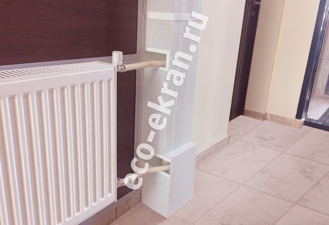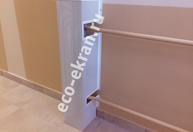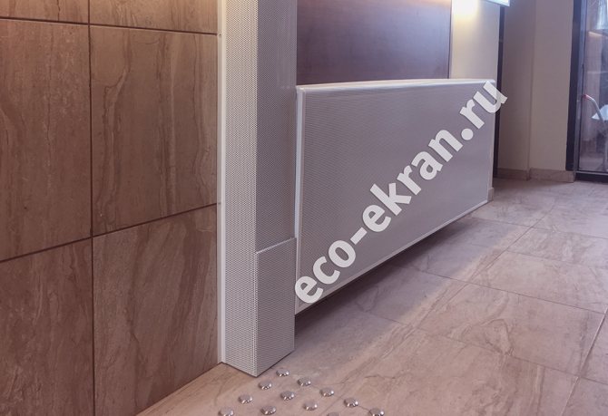 Les écrans décoratifs pour tuyaux de chauffage sont, en fait, le même socle ou boîte, uniquement avec des fentes pour la circulation des masses d'air. De tels éléments sont généralement installés sur des tuyaux de chauffage de socle. Ils sont en acier ou en aluminium.