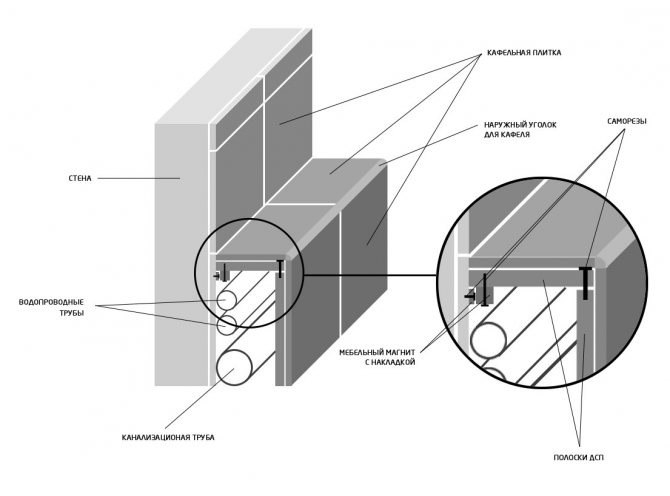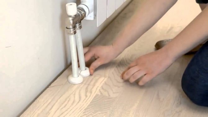 Attention! Si les communications sont posées très près du mur, un demi-cercle est découpé dans la dérivation. Il est collé pour que la pièce ne tombe pas sous le harpon, sinon elle ressortira.