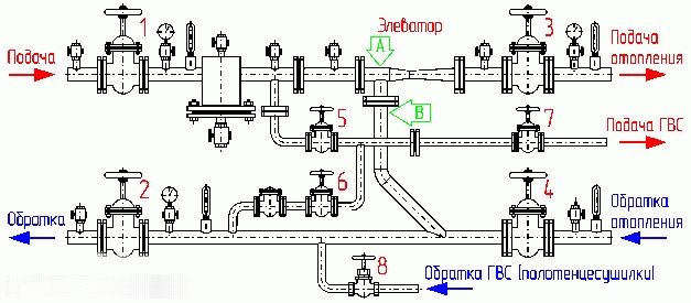 L'unité d'ascenseur du système de chauffage est une sorte d'intermédiaire entre les réseaux de chauffage centralisés et les communications intra-bâtiments. C'est une structure d'ingénierie à plusieurs composants. Parmi les éléments clés de l'équipement, on distingue les suivants: