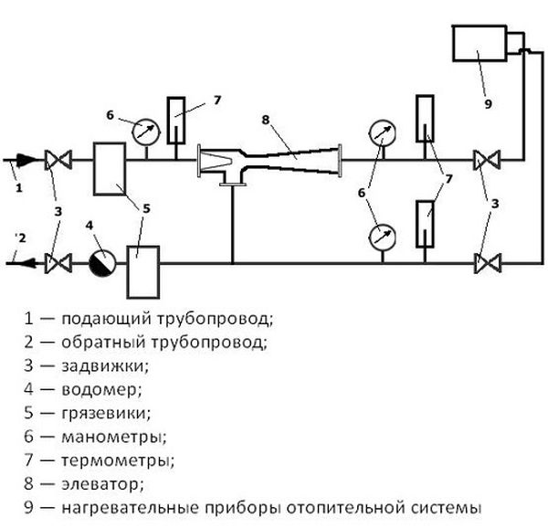 Les constructions sont particulièrement pratiques pour tous les immeubles à appartements. Et si quelqu'un pense qu'il est possible de ne pas utiliser une telle unité, en la remplaçant par une alimentation naturelle en eau avec une température légèrement inférieure, alors c'est une illusion profonde, car en l'absence d'unité d'ascenseur, il sera nécessaire de augmenter le diamètre des conduites pour fournir un liquide de refroidissement moins chaud. En présence d'une telle pièce, il sera possible d'ajouter une certaine quantité de fluide caloporteur au fluide d'alimentation du circuit de retour, déjà suffisamment refroidi.