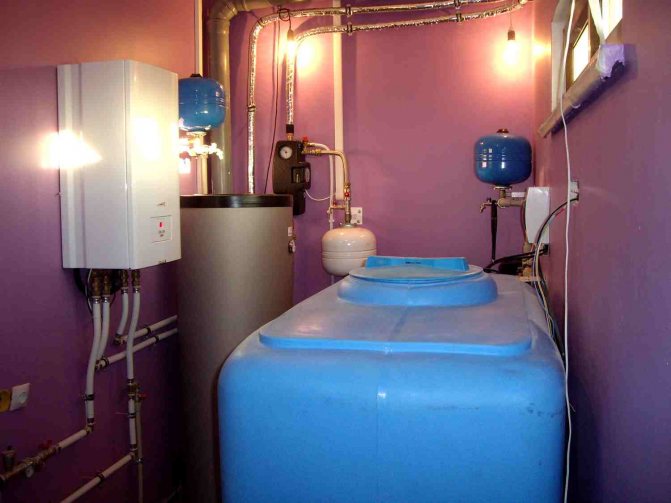 - Si nous parlons à l'échelle d'une maison privée, alors il contient un appareil qui chauffe l'eau, un pipeline à travers lequel il se déplace vers les points de distribution et une pompe de circulation, qui, en fait, assure le transport.