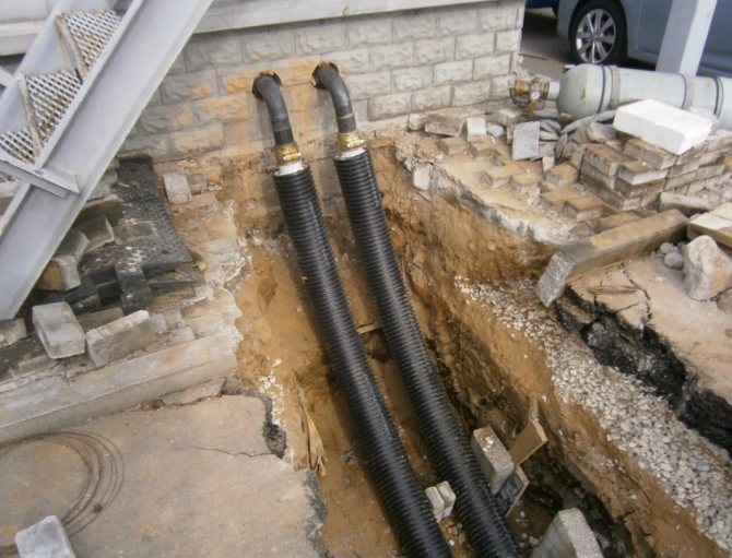 Entrée des tuyaux d'alimentation et de retour dans le bâtiment