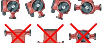 Lors de l'installation de pompes mélangeuses dans des bâtiments résidentiels et publics, il est recommandé d'utiliser une pompe silencieuse et sans fondation. Lors de l'installation de pompes mélangeuses conçues pour un débit élevé, des pompes centrifuges de type K et KM sont utilisées comme pompes mélangeuses. Le débit de la pompe est égal à G2 = 1,1G1, et la hauteur manométrique doit être égale à H = 1,15h (où h est la résistance du système de chauffage).