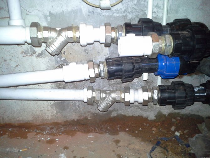 "Collector" en polypropylène. Vannes d'équilibrage sans indication de débit. Sur la base du gel, l'équilibrage n'a pas été effectué: