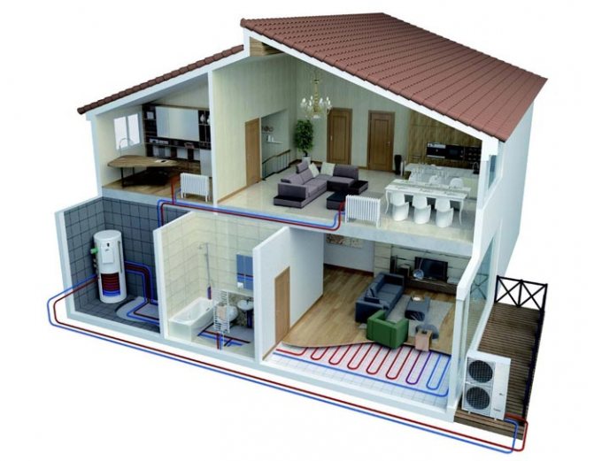 Si un tel système est équipé d'un échangeur de chaleur spécial avec des buses, le type HP "air-eau" sera obtenu. Il est connecté à un système de chauffage de l'eau.