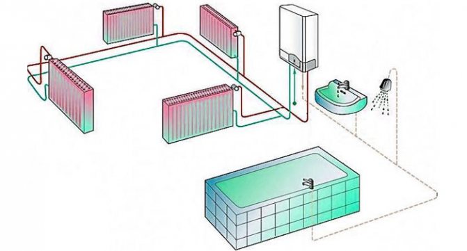 Source de gaz - il peut s'agir d'un réservoir de gaz ou d'un gazoduc. Chaudière à eau chaude - peut être divisée par fonctionnalité en systèmes à un et à deux circuits: