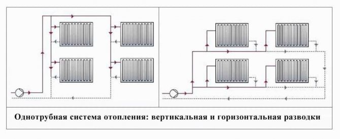 Les systèmes monotube ont une portée étroite - chauffer des pièces de grande surface.Par conséquent, ils ne sont presque jamais installés dans les bâtiments résidentiels. Horizontal système à deux tuyaux