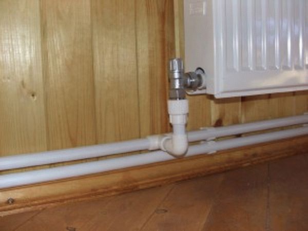 Le système à deux tuyaux avec tuyauterie inférieure comprend un tuyau d'alimentation et un tuyau de retour. Ils sont posés sur la surface du sol ou dans le sol, par exemple dans une chape. Lors de la mise en œuvre d'un tel système, le liquide de refroidissement entre dans chaque batterie indépendamment. Un tel schéma n'est pas dénué de nuances. Chaque radiateur doit avoir un robinet à travers lequel l'air peut être dégonflé.