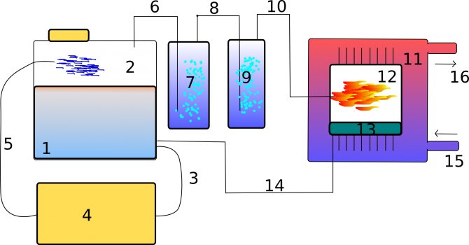 Pour le moment, aucune source ne peut donner un succès précis et garantissant des instructions pour la construction d'une chaudière à hydrogène. Mais selon les compétences et l'expérience des chimistes et techniciens en exercice, une telle unité devrait comprendre les éléments suivants: