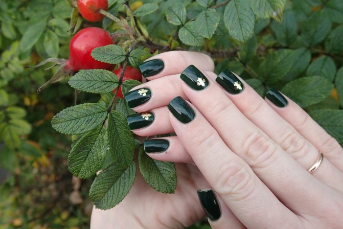 - Ensuite, vous devez effectuer une manucure hygiénique et couvrir les ongles avec une base protectrice. Si vous le souhaitez, vous pouvez également utiliser un vernis coloré qui correspond à la couleur de la feuille. Cela aidera non seulement à sauver la plaque à ongles des influences néfastes, mais aussi à l'aligner un peu pour que la manucure finie soit plus soignée.