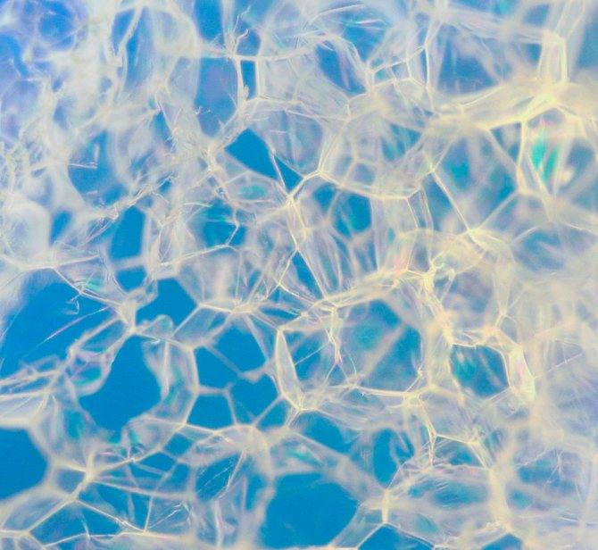Polyfoam est produit à partir de matières premières polymères, qui sont traitées à la vapeur d'eau, ce qui augmente considérablement le volume des granulés. Mais en même temps, cela conduit au fait que les micropores augmentent également en taille, ce qui entraîne une détérioration de la liaison entre les granulés et progressivement, lorsqu'ils sont exposés aux précipitations atmosphériques et aux conditions climatiques, cela conduit au fait que le matériau s'affaiblit. En gros, si vous cassez une feuille de polystyrène en deux, un grand nombre de granules se forment. Ce n'est pas typique du polystyrène expansé, car il se compose initialement de cellules fermées, qui assurent l'imperméabilité à l'humidité et à la vapeur du matériau. Au début de la production, ses granulés sous l'influence de températures élevées fondent, formant une masse fluide uniforme, qui se remplit de gaz.