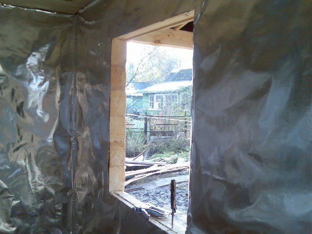 Les joints avec des ouvertures de fenêtres et de portes doivent être particulièrement soigneusement rembourrés. Clouez la feuille avec du ruban adhésif, collez-la avec du ruban adhésif, en vérifiant les fissures.