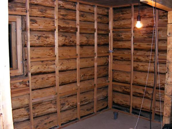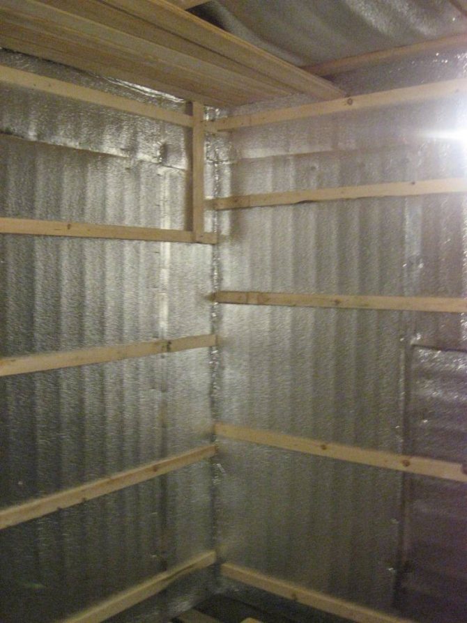 - Au-dessus de la feuille, nous fourrons des lattes sur les murs d'une épaisseur de 2 à 4 cm, au plafond - 5 cm.