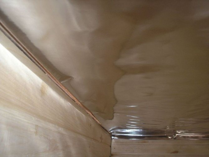 Après avoir lu des critiques sur la feuille de bain, vous pouvez comprendre qu'elle a un large éventail d'utilisations. Il peut être installé non seulement sur les murs, mais également au plafond. Pour ce faire, il est recouvert d'un rouleau de papier avec un large chevauchement. À l'étape suivante, le papier est fixé avec des barres carrées d'un côté de 5 cm et une isolation est installée entre elles.