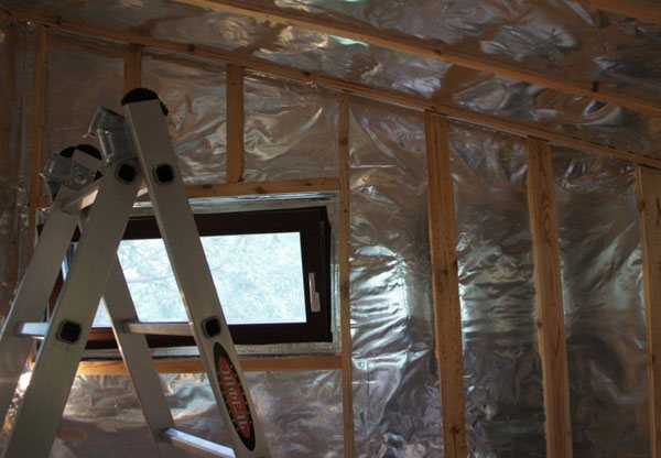 D'après les informations ci-dessus, il est devenu clair que le papier d'aluminium est utilisé à la fois avec et sans isolation. Dans le premier cas, la feuille est appliquée sur l'isolant et dans le second sur le bois ou la bûche.