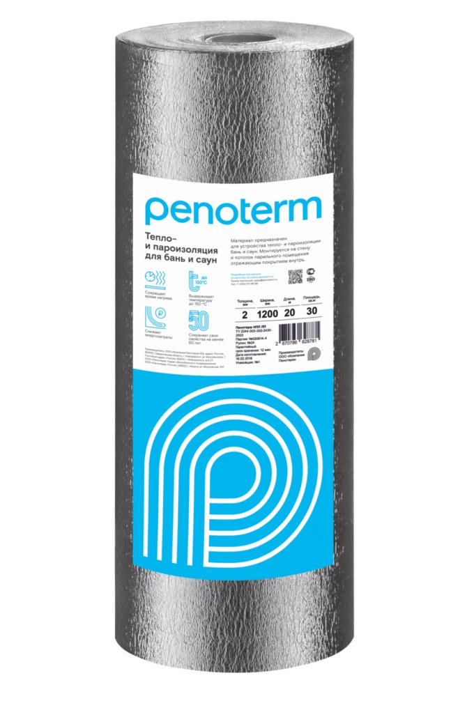 Penotherm NPP LF est un matériau d'isolation thermique en polypropylène expansé avec une feuille d'aluminium. C'est une isolation thermique réfléchissante car elle utilise une feuille d'aluminium polie. Il est principalement utilisé pour l'isolation thermique des murs et des plafonds des bains et des saunas.