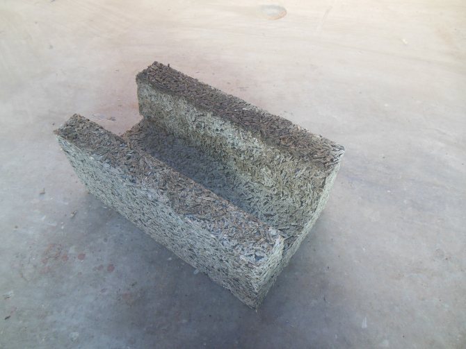 Le mélange fini de béton de bois monolithique est une masse moyennement humide. Si vous prenez des chips dans votre main, l'eau ne devrait pas en sortir!