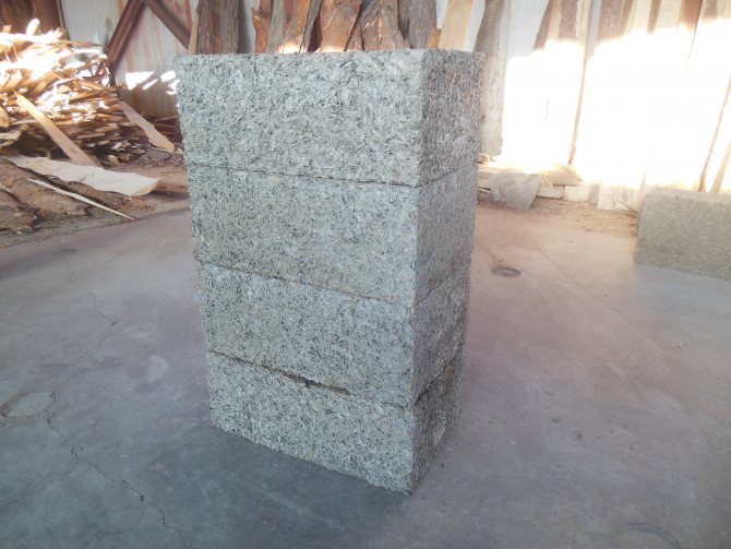 De plus, le bois trempé dans une solution de chaux est mélangé avec du ciment. Les proportions devraient être quelque chose comme ceci: eau, sciure de bois et ciment dans un rapport de 4: 3: 3.
