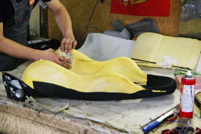 - Une couche de mousse de polyéthylène est fixée avec une agrafeuse ou de la colle.