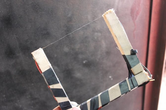 Pour ce faire, vous n'avez pas à concevoir un appareil fait maison, il suffira d'inviter un assistant. Les poignées doivent être solidement fixées à un morceau de fil d'acier d'un diamètre de 0,5 mm des deux côtés.