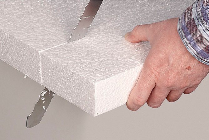Lorsque vous travaillez avec de la mousse, l'outil de coupe est sélectionné en fonction des tâches et des conditions de travail. En règle générale, les dalles de polystyrène sont coupées sur le balcon ou la salle de bain.