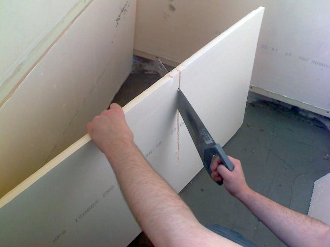 Pour commencer, à l'aide d'un crayon, un marquage de la future coupe est effectué. En plus de la ligne, vous devez attacher une règle et utiliser un couteau de bureau. Il n'est pas nécessaire d'essayer d'obtenir le couteau pour couper complètement la plaque. Retournez ensuite la dalle et terminez la coupe. Ensuite, complétez manuellement l'incision.