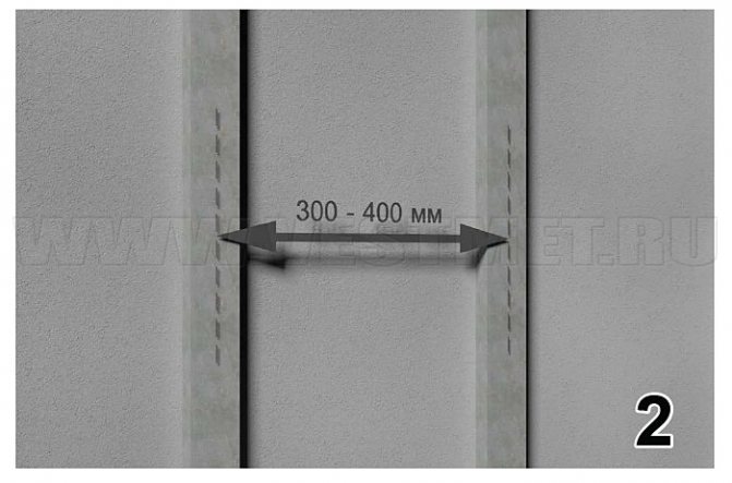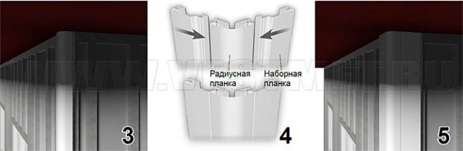 Selon la situation, l'élément de départ pour la disposition verticale du parement peut être: la planche initiale, la planche finale, les planches d'angle (figure 6), ainsi que les planches inclinées. L'élément de départ est de niveau et fixé avec un pas de 300 mm.