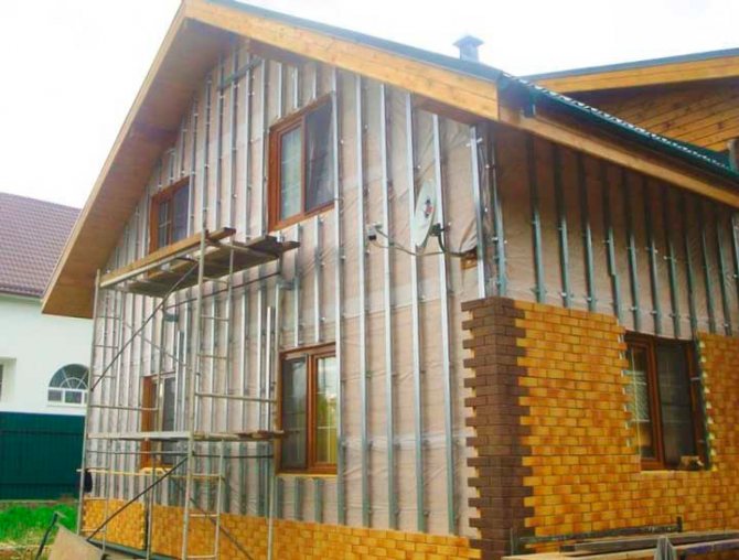 Pour l'installation du bardage, une caisse en bois ou en métal est installée. Le métal est préférable - il est plus solide et plus durable. Le lattage est installé à l'aide de supports, de profilés, nivelés avec un niveau. L'isolation est posée. Avec des murs plats, l'installation de certains panneaux (sans isolation) peut être effectuée immédiatement.