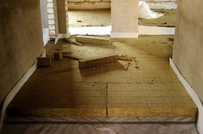 Lors de l'isolation du sol, les dalles sont posées entre les bûches.