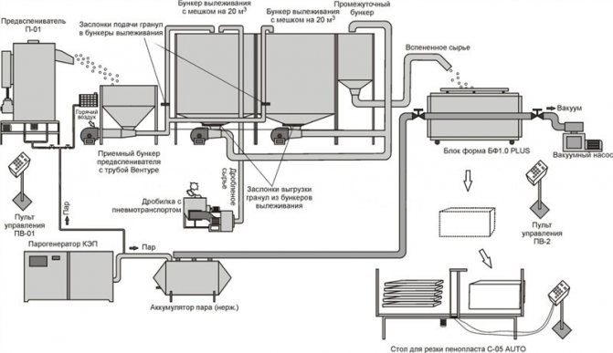 La mousse de polystyrène extrudé (EPS) est produite en combinant du styrène avec des additifs moussants spéciaux. Tous les composants sont mélangés sous une chaleur et une pression élevées. La masse préparée est passée à travers une extrudeuse - à la sortie, dalles à surface lisse.