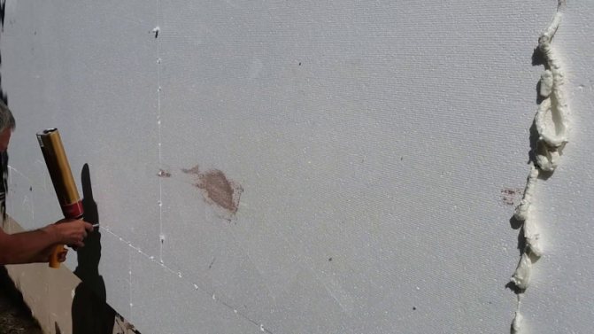 Noter! Il est nécessaire de travailler avec de la mousse de polyuréthane, qui a la température ambiante.Par temps froid, vous devez d'abord le réchauffer. Même en hiver ou en toute saison.