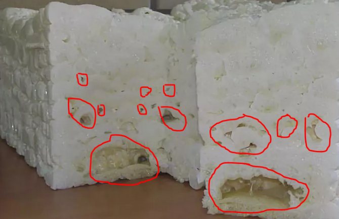 - Les dimensions des cavités. La mousse constituée de petites bulles est considérée comme bonne. C'est la différence entre les professionnels, bien que certains ménages aient également peu de grandes cavités. Mais ils ne peuvent pas non plus être classés comme bon marché.