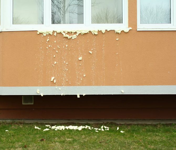 Pourquoi alors avez-vous besoin d'une mousse de construction avec une grande expansion secondaire? Il a son propre domaine d'application - le remplissage de cavités et de fissures dans des matériaux et des structures rigides et stables. Par exemple, dans le béton, comme agrégat calorifuge entre le mur et la finition en brique. La mousse à forte expansion secondaire est moins chère. Ceci est important pour les gros volumes.