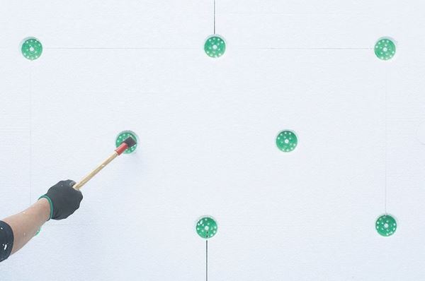Pour une fixation plus fiable du polystyrène expansé, utilisez deux méthodes à la fois: l'atterrissage sur de la colle et la fixation avec des chevilles.