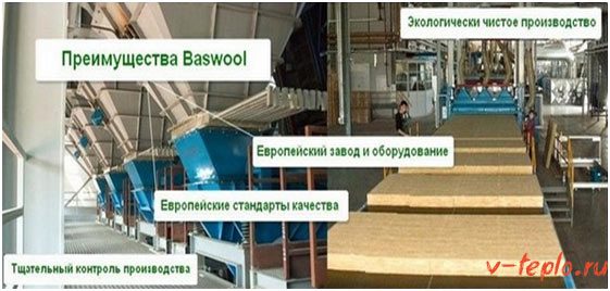 La laine de roche est fabriquée à partir de roches de basalte. Pour obtenir cette fibre, les matières premières sont traitées à des températures supérieures à 1000 ° C. Les différentes pièces sont maintenues ensemble avec des résines organiques. Basvul est produit dans une usine moderne à Blagovechtchensk près d'Oufa. Les premiers lots d'isolants sont sortis à l'été 2011.