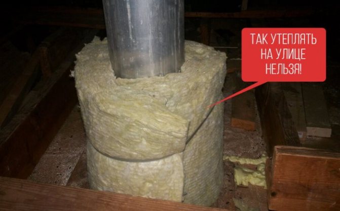 - Le revêtement doit commencer: une partie du tuyau, à partir du sol du grenier.