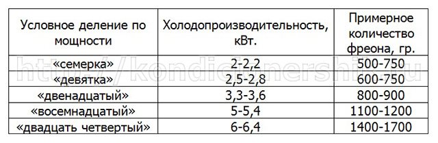 Ainsi, vous pouvez calculer la quantité requise de fréon, faire le plein du système et acheter le réfrigérant nécessaire complètement par vous-même.