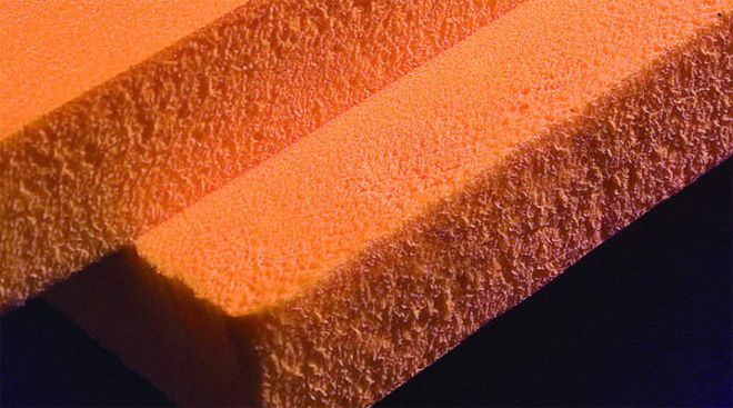 Comme déjà mentionné, l'extrusion vous permet d'obtenir une uniformité dans la structure du matériau. Des cellules uniformément réparties de petite taille (dixièmes de millimètre) améliorent les caractéristiques de résistance de l'isolant Penoplex. Il ne change pas de taille même sous de lourdes charges.
